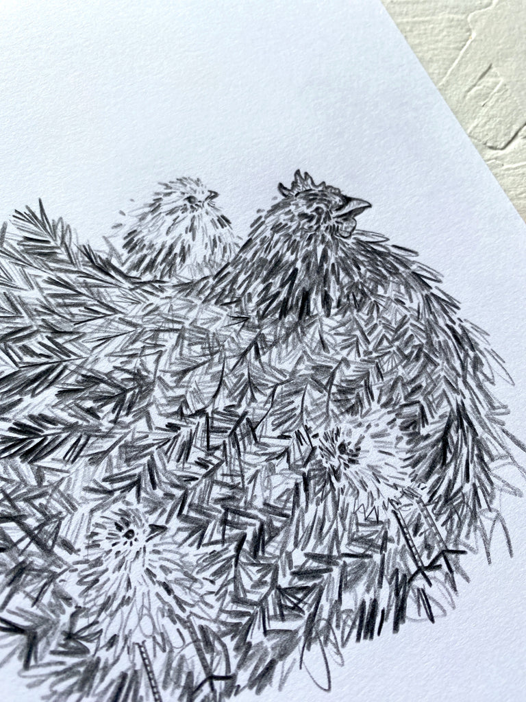 The original black pencil illustration. Drawn on neutral toned off white medium weight paper. A5 size.